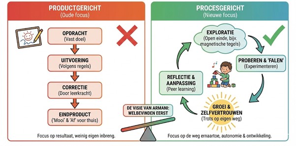 • Procesgericht werken loont: in de kleuterklas bestaat falen niet, elk experiment draagt bij tot groei.